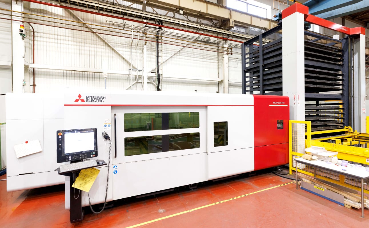 お客様の幅広い加工ニーズに対応し、複雑な形状も精密で美しく切断できる、0.3㎜から30.0㎜までの4台のレーザー加工機を配置し、全てクリーンカットにて切断しています。クリーンカットで切断することにより切断面の変色・次工程での仕上等お客様にメリットのある製品を提供しています。又作業効率・納期・コスト競争にも対応できるよう、全機夜間に無人運転を行い前日の注文を翌日には出荷できる体制を整えています。